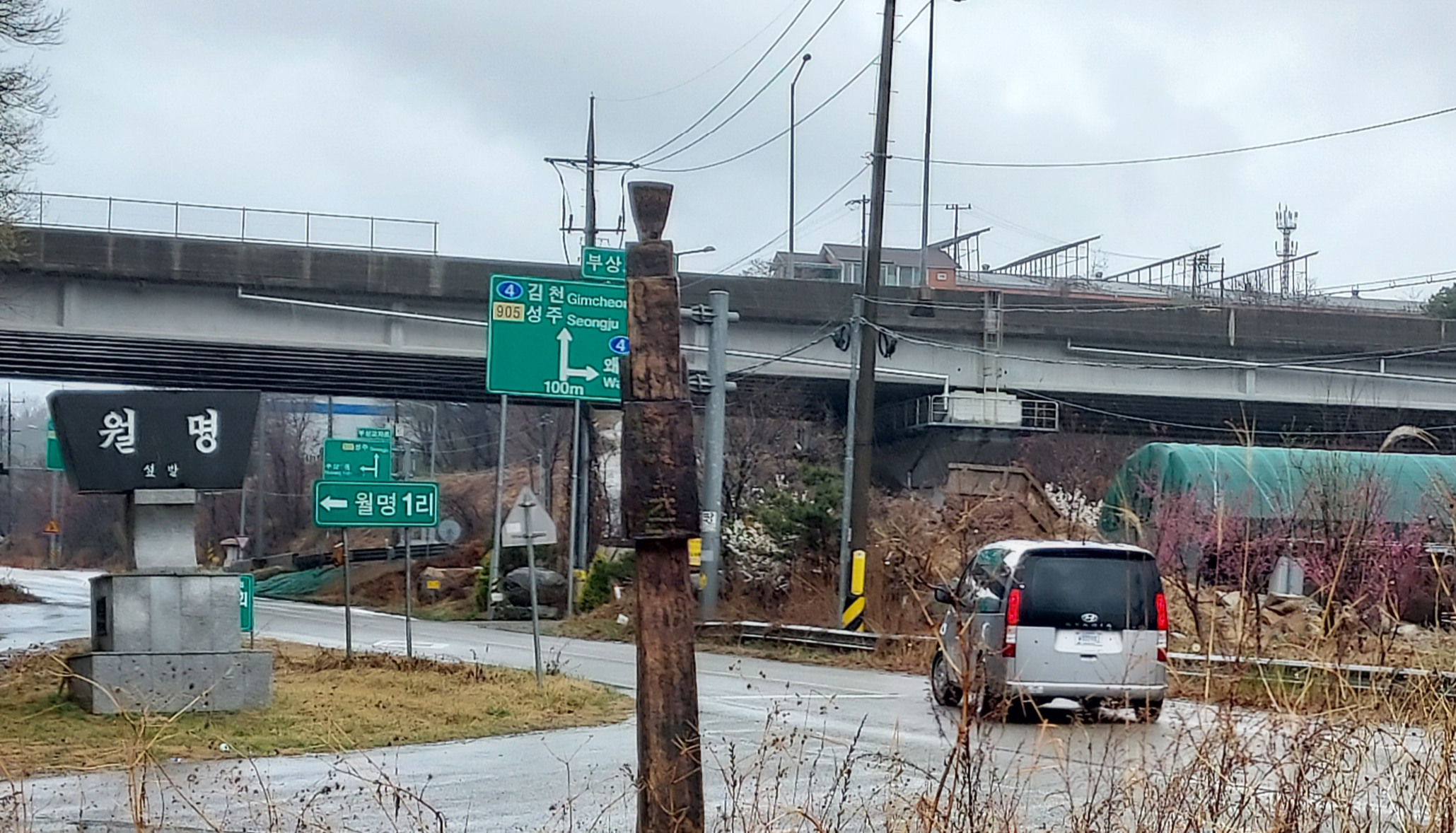 평소처럼 12시쯤 부상 나들목에 나가 보초를 섰다. 월명리 섶밭 마을표지 비석을 돌아나가는 미군 승합차가 보였다.