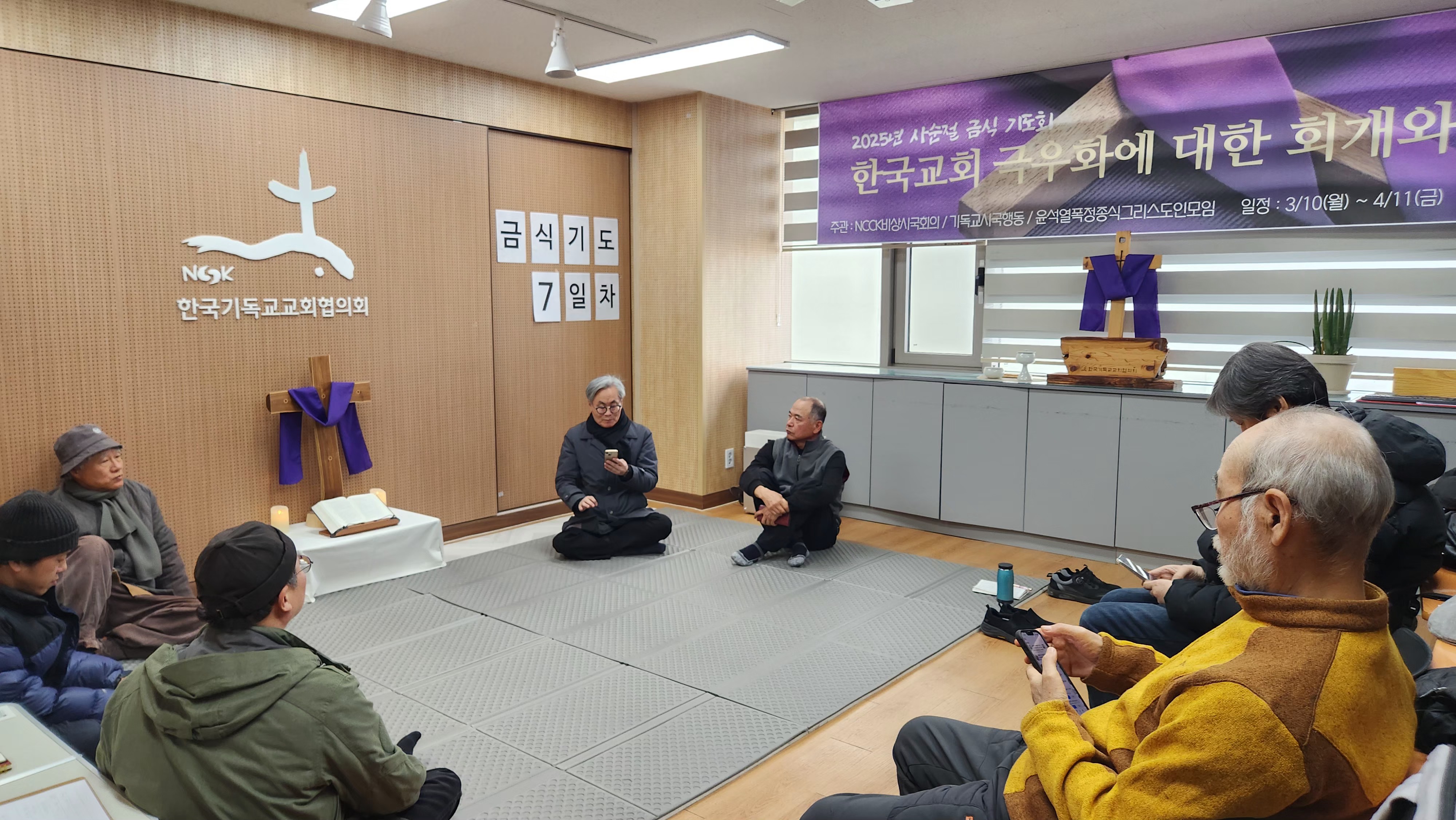 2025년 사순절 금식기도회 '한국교회 극우화에 대한 회개와 성찰' 금식기도 7일차를 예수살기가 이어갔다.